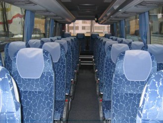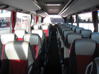 49 + 2 + řidič, klimatizace, 2x lednice, WC, u všech sedadel připojení na 220V nebo USB, polohovatelné opěrky